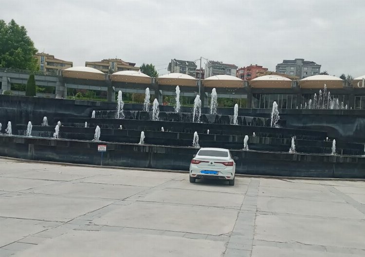 Su fıskiyeleri gerçekten meydana çok güzel görüntüler katıyor. Ama gelin görün; bu geniş, güzelim park meydanım otopark olarak kullanılıyor. Kamyonlar, karavanlar otobüsler parkediliyor.