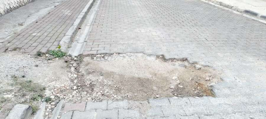 "Nilüfer ilçesi, Çamlıca Mahallesi'ndeki Yaldız Sokak'ta çok zamandır yola döşenen parke taşlarının durumu resimdeki gibi böyle dağılıp kaldı..