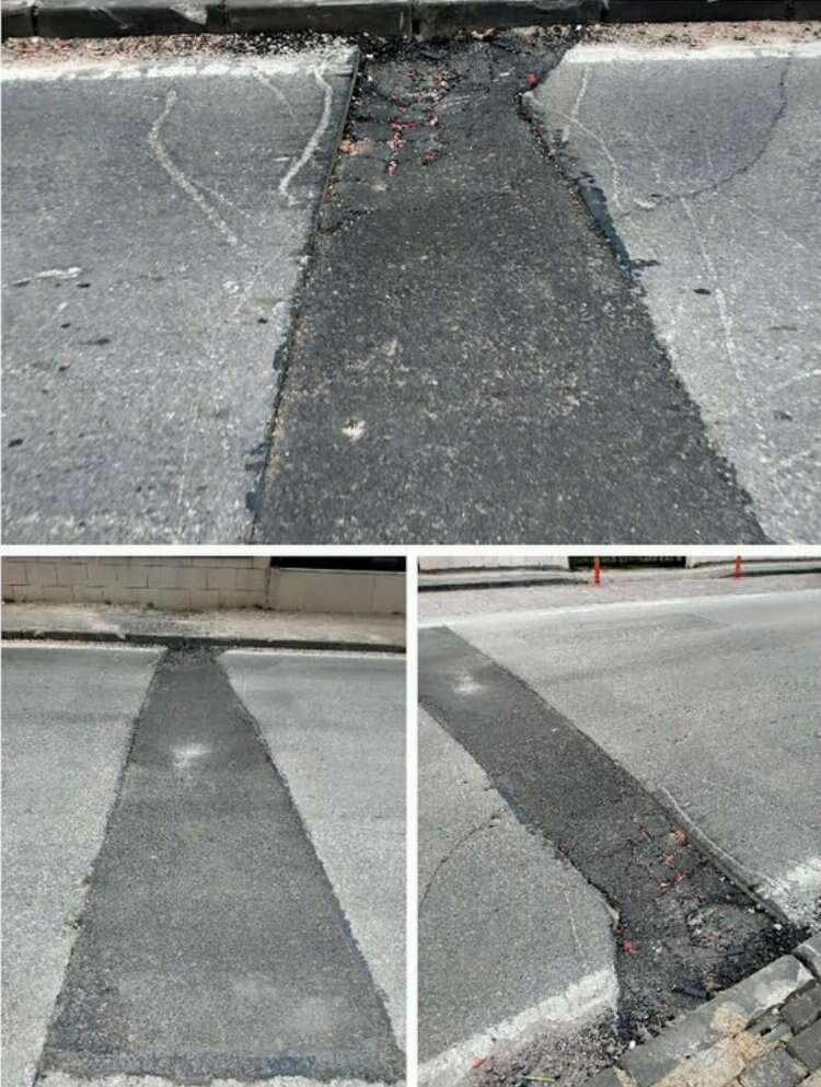 "Nilüfer, Konak Mah. Eğitimciler Caddesi'ndeki 6 no'lu BBOİ otobüs durağı ile Songül sokak arasındaki bu yolda bir süre önce yapılan asfalt yama işlemi çalışma alanında onarılan lermlerde santkim santim çökmeler oluşmaya ba şladı. Gittikçe derinleşen kesim var. Önlem alınmazsa daha da derinleşebilir.