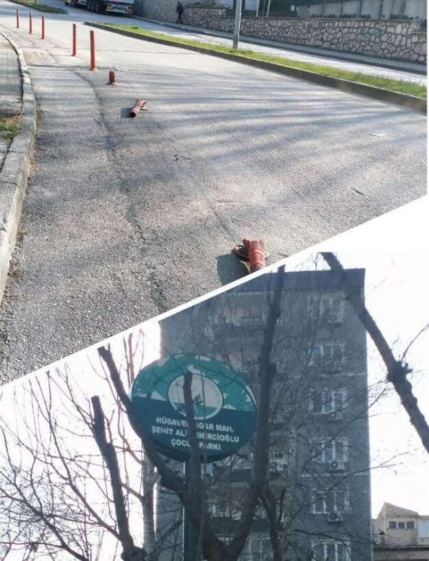 Örnek olarak iki de fotoğrafım var. Osmangazi, Hüdavendigar Mh.. Şehit Ali Demircioğlu Çocuk Parkı karşısındaki delinatorler.