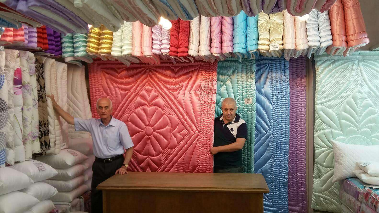 Ve bu çarşının en eski kuruluşu da 72 yıllık bir geçmişe sahip.. Dayıdan, dededen, babadan oğula geçen Konçi tekstil, tasarım, yatak örtüsü ve yorgan üreten firma Doğan Konçi (fotoğrafta solda, yardımcısı Murat Bülbül ile) kaptanlığında el sanatlarının yok olmaya yüz tutan yorgancılığı yaşatmak ve yeni ustalar yetiştirebilmek için büyük bir çaba sarf ediyor.