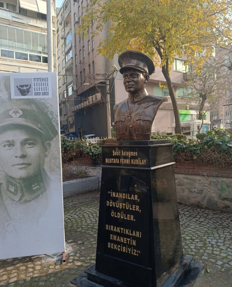 1930 yılında Cumhuriyet karşıtlarınca katledilen devrim şehidi Asteğmen Mustafa Fehmi Kubilay'ın, 95.ölüm yıldönümünde Osmangazi Belediyesi ve Atatürkçü Düşünce Derneği işbirliğiyle heykeltıraş Pınar Öktem'e Bursa Barosu'nun katılarıyla yaptırılan büstü Altıparmak Caddesinde döner taş heykellerinin de bulunduğu 100 Yıl Parkı'na törenle kondu.
