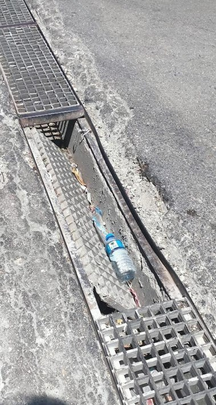"Nilüfer, Ataevler Magazin Outlet karşısındaki otobüs park alanı girişi burası. Yerdeki mazgalların derhal düzeltilmesi lazım,araları çok açık ve çökmüş halde. İnsan (özellikle küçük çocukların) ayağı girerse kırabilir.