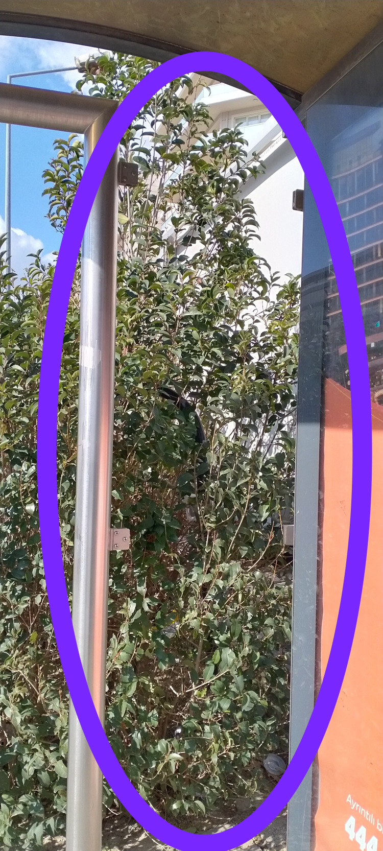 Fotoğrafta bu durakta kırılan ve yeri bomboş kalan camın olduğu yer. Daire içine aldığım yerin camı boydan boya kırık.