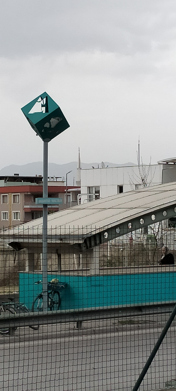 Ve istasyonun girişini bilmeyen yabancılar için uzaklardan bakıldığında da BURULAŞ tarafından yerini gösteren bir tabela.