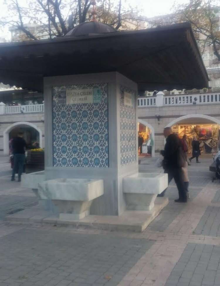 Ulucami yanındaki meydanda Evliya Çelebi Çeşmesi'nin musluklarının olmadığını, musluk yerlerinin de kör tıpa ile kapatıldığına sahit olunca şaşırdım, çok üzüldüm.