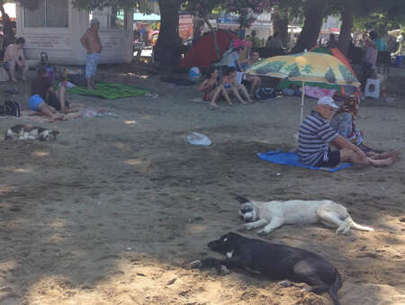Fotoğraflardan da anlaşılacağı gibi artık insanlar plajda köpeklerle birlikte güneşlenip denize giriyor.