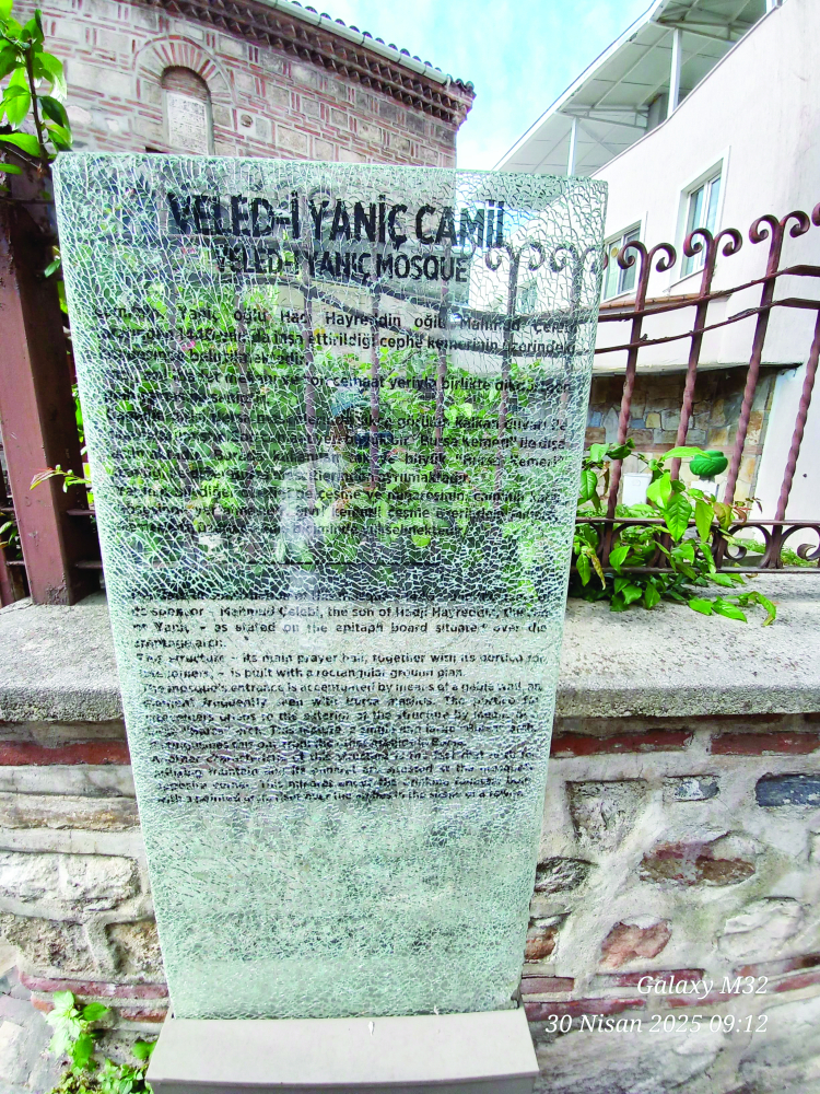 Veled-i Yaniç adı nereden geliyor diye çok merak ettim?. Cami bahçesinde şeffaf bir tabela var. Ama oku okuyabilirsen. Sokak köşesinde de başka bir tabela. O da berbat olmuş!.