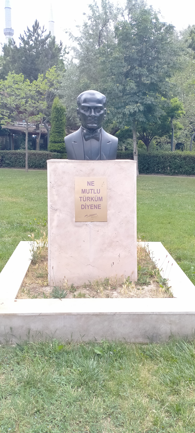 Öğretmen arkadaşlarımızla birlikte geçmiş dönem Başkanlarımızdan Sn. Mustafa Bozbey'e ricamızla parka konulan Atatürk büstünün çevresi de bakımsızlık nedeniyle bizleri çok üzüyor. Çimenler tamamen kurumuş, otlar bürümüş, toprak zemin çıkmış ortaya. Büstün çevresine birkaç çiçek ekilse, çimenler yenilense fena mı olur?.