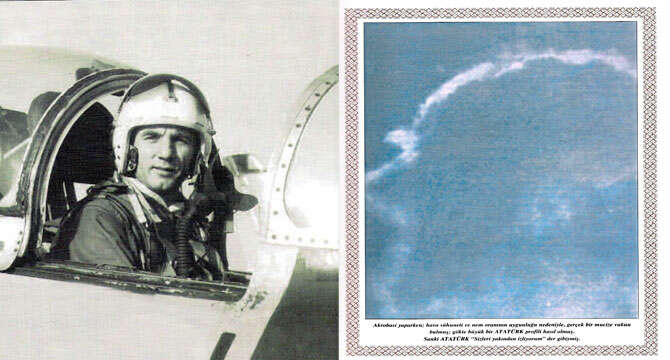 Işıklar içinde olsun. (Fotoğraflar, pilot Artan ve Dolmabahçe Sarayı üzerinde ekibiyle birlikte egzoz gazlarıyla çizdikleri Atatürk profilinin o günkü gazetelerde çıkan görüntülerini yansıtıyor)