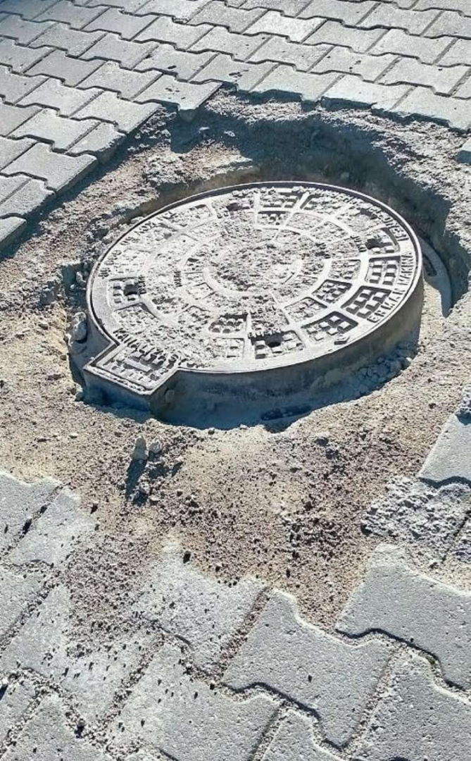 “Düzensiz, tehlike saçan rögar kapakları bizim Nilüfer ilçesi, Çamlıca Mh. Ata Cad.’den Gün Sk.a girince adeta seri halde. Yokuş yukarı doğru düz şekilde çıkınca yaklaşık 30 m. ileride bu rögar karşımıza çıkıyor ama bu bölgede benzer durumda daha nice rögar kapakları var. Kapakların çevreleri her gün biraz daha eriyip, derinleşiyor. Sevgili BUSKİ nerelerdesin?.” -BÖLGE SAKİNİ KINA