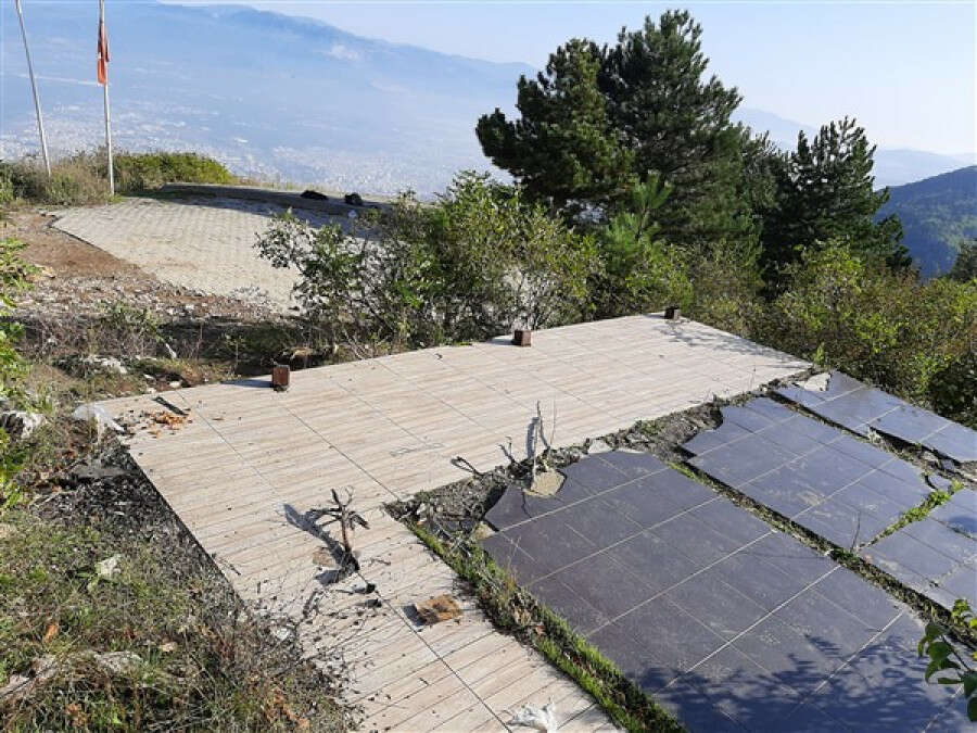 Teleferik-Siteler'den gelen bir araca bindik. Sonra yaya olarak Yıldırım Bld.eski Bşk.Sn.Özgen Keskin dönemi yaptırılan yamaç paraşüt alanı ve seyir terasına ulaştık.