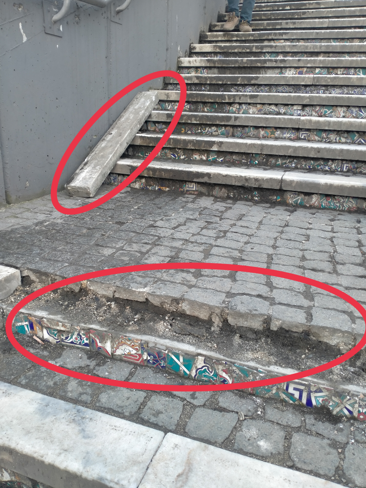 Net bir şekilde görüldüğü gibi merdiven basamakları harap vaziyette. Dökülüyor desem abartmış sayılmam.