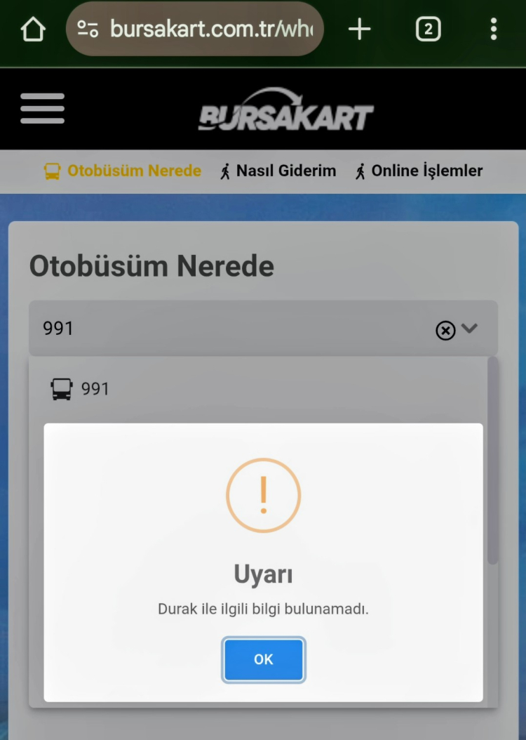 'Bursa'da ne kadar büyüyor, yeni yeni semtler oluşmuş yine' diyerek, merakım iyice arttı ve BURULAŞ Mobil ve internet sitesinde belirtilmeyen bu meçhul 991 hattıyla acaba nereye ve hangi saat aralarıyla gidiliyor merakıma bir yanıt bulamadım.
