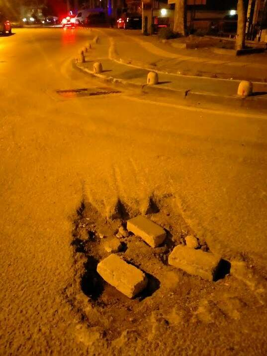 Çavdar Sk.'ın kesiştiği yolun ortasında derin bir çukur. Kapatmak zor