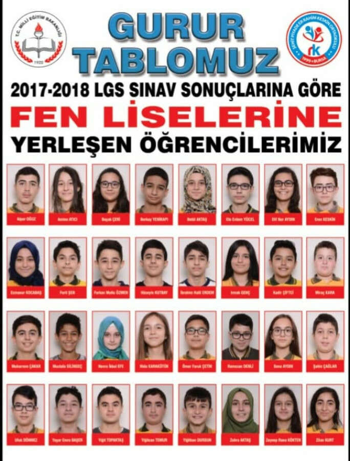 2017-2018 öğretim yılında ise 32 öğrenci fen lisesine kayıt olma hakkı kazanmış. Yine onlarca öğrenci Anadolu liselerine gidecek puana ulaşmış.