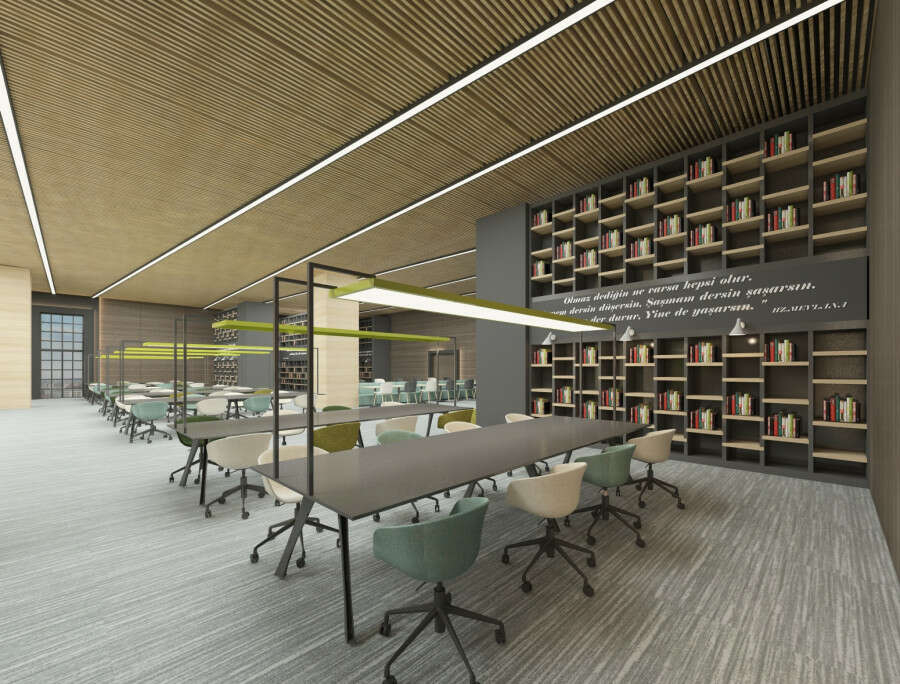 Kütüphane alanıysa toplam 835 metrekare aynı anda 250 kişinin oturabileceği ve faydalanabileceği şekilde planlanmış.