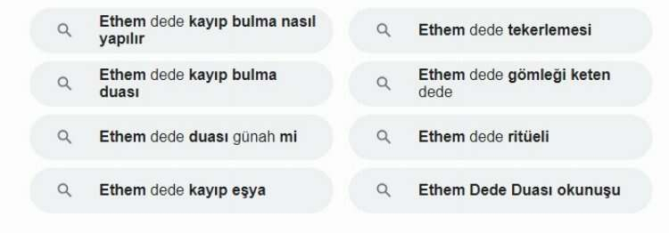 En çok yanıt aranan sorular arasında, “Ethem Dede duası nasıl yapılır?, Ethem Dede nasıl çağırılır?, Ethem Dede ritüeli nedir?, Ethem Dede duası günah mı?” gibi sualler yer alıyor.