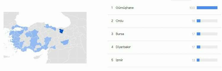 Google Trends verilerine göre neredeyse Türkiye’nin dört bir yanından her gün onlarca kişi Ethem Dede ilgili araştırma yapmış. Son verilere göre en çok arama yapan il Gümüşhane olurken Bursa 3. sırada yer alıyor.