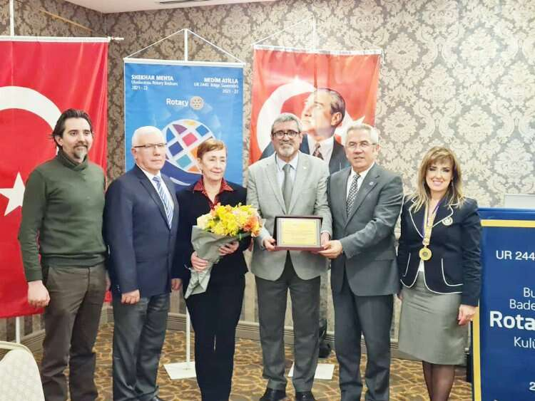 Törende Bademli Rotary Kulübü başkanı Gülşah Gicvan Büyükarda, Kurucu Başkan Naci Şahin, Rotary 2440 . Bölge Kurumsal İletişim ve Halkla İlişkiler Komitesi Başkanı Adnan Sözeri, Bademli Rotary Kulübü Genel Sekreteri Erol İnal ve eşim Prof. Dr. Füsun Öztürk Kuter ile birlikte olduk.