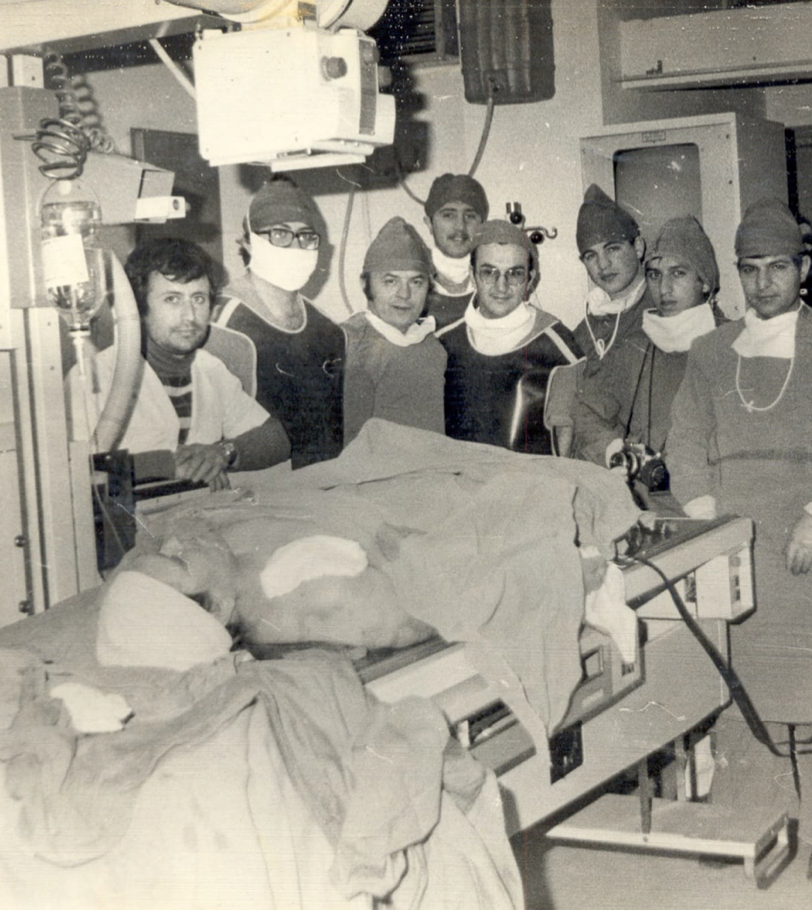 Bu siyah beyaz fotoğraf o ameliyattan bir anı. Soldan ikinci Op.Dr.Ertem Kalaycıoğlu, yanında Prof.Dr.Ayhan Özdemir ve sağ başta Prof.Dr.Mete Cengiz.