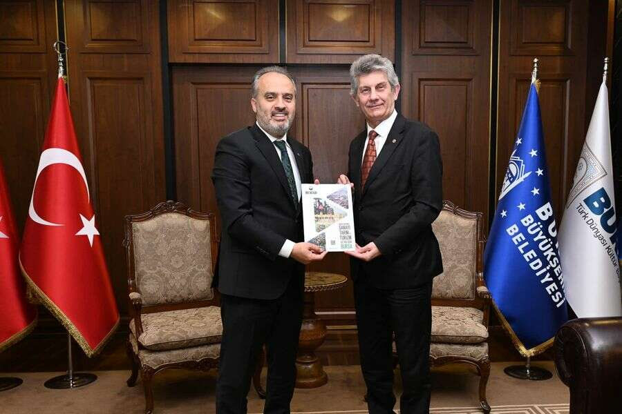 Şimdi ise BUSİAD Başkanı Küçükkayalar ve yönetim kurulu üyeleri, Bursa Büyükşehir Belediye Başkanı Alinur Aktaş’ı ziyaret edip, Bursa Vizyonu Raporu’nu ona sundular.