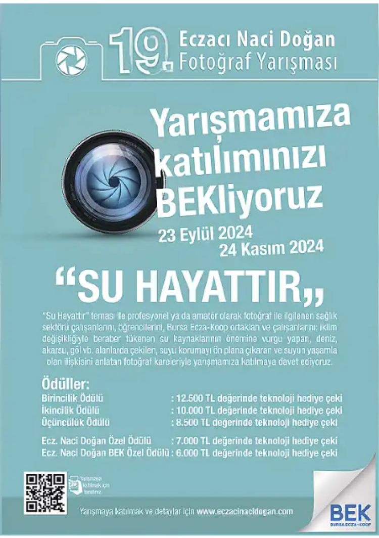 Bu yıl 19. Naci Doğan Fotoğraf Yarışması “Su Hayattır” teması ile yola çıkıldı. Yarışmaya profesyonel ya da amatör olarak fotoğraf ile ilgilenen sağlık sektörü çalışanları, öğrencileri ve BEK çalışanları katılabiliyor.