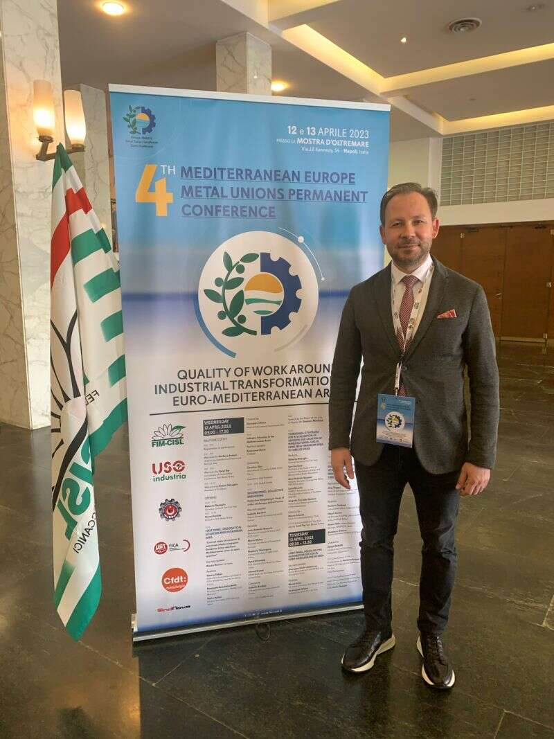 Avrupa Metal Sanayi Sendikaları Daimi Konferansı’nın(EMUIC) 4’üncüsü, “Akdeniz Bölgesindeki Endüstriyel Dönüşümler Karşısında İşin Kalitesi” ana temasıyla, 12-13 Nisan 2023 tarihlerinde İtalya’nın Napoli kentinde yapıldı. Konferans İtalyan Metal Sendikası FIM-CISL, İtalyan Sendikaları Geliştirme Derneği SindNova ile Türk Metal Sendikası’nın birlikte düzenlediği ve daha önce ilk 3’ü ülkemizde gerçekleştirilen bir toplantıydı.