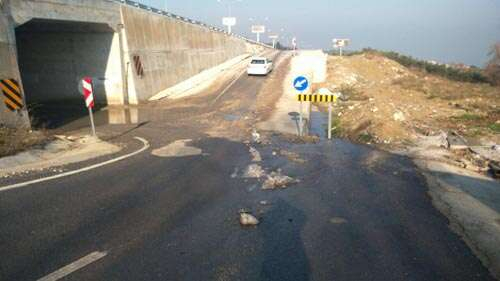 Yolun yarısı kaymış, Karayolları oraya bir tabela koymuş öylece duruyor. Dönüp, altgeçide girdiğinizde havuza girmiş oluyorsunuz.