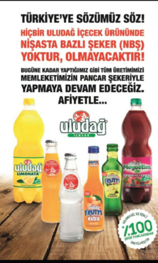 Hiçbir Uludağ İçecek ürününde Nişaşta Bazlı Şeker (NBŞ) yoktur ve olmayacaktır.
