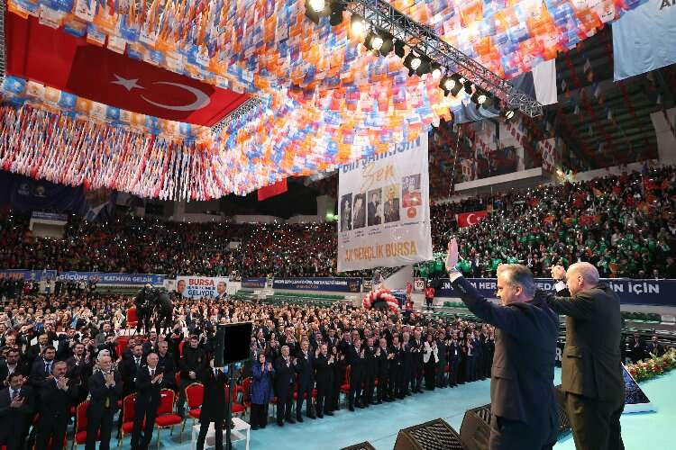 Dün, Tofaş Spor salonu hıncahınç doluydu. Geniş güvenlik önlemi alınan toplantının yapılacağı salona 4 noktada kimlik kontrolü üç noktada aramadan geçirilerek girebildik. Gençlik ve kadın kolları ekipleri tanıtıma oldukça iyi hazırlanmış, pankartlarla süslenen salonda Cumhurbaşkanı Erdoğan’ın programı boyunca tezahürat eksilmemişti.