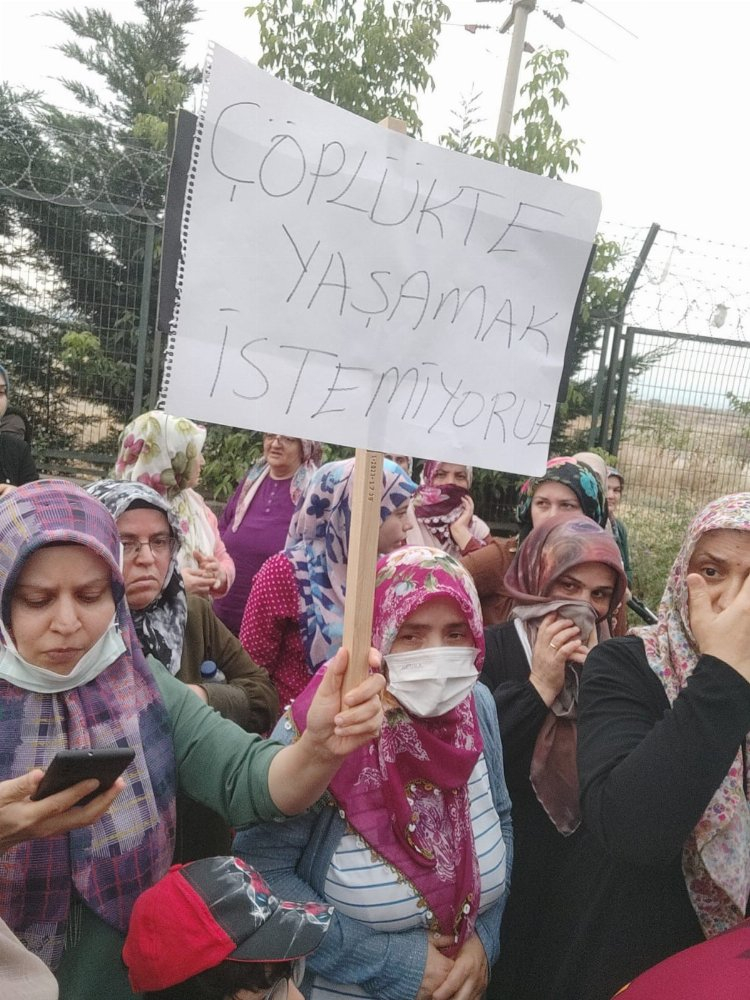 Kadınların çoğunlukta olduğu mahalleliler önceki gün çöplük önünde eylem yaparak, sıcakların yükselmesiyle birlikte artık dayanılmaz hale gelen kötü kokuyla ilgili şikayetlerini dile getirdiler.