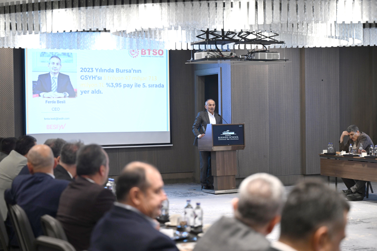 Besli’nin sunumu Bursa’nın son 5 yıllık döneme ilişkin gayri safi yurt içi hasılası, ihracat ve ithalat rakamları ile diğer ekonomik göstergelerini kapsıyordu.