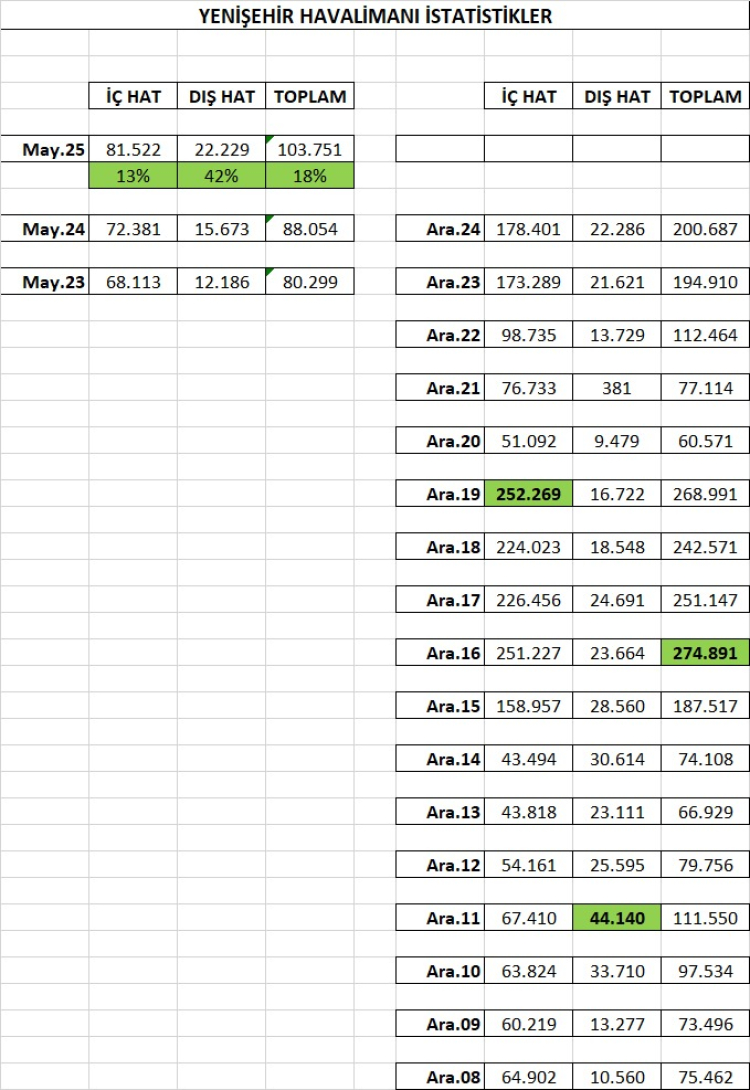 Bu sayının sabit kalması değil, Yenişehir Havalimanı’nın da bu potansiyele yaklaşması gerekiyor.