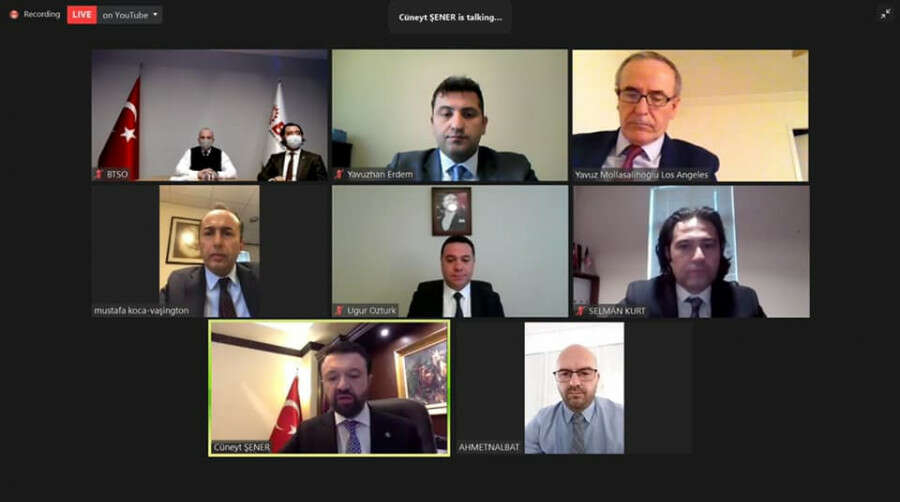 Vaşinton Ticaret Başmüşaviri Mustafa Koca, müşaviri Selman Kurt, New York Ticaret Ateşeleri Ahmet Selçuk Nalbant ve İskender Balcı, Şikago Ticaret Ateşesi Uğur Öztürk, Los Angeles Ticaret Ateşeli Yavuz Mollasalihoğlu ve Mehmet Çetik, Houston Ticaret Ateşesi Ahmet Yavuz Erdem, online toplantıda Bursalı iş insanlarına bu ülkedeki fırsatları ve ticareti anlattı.