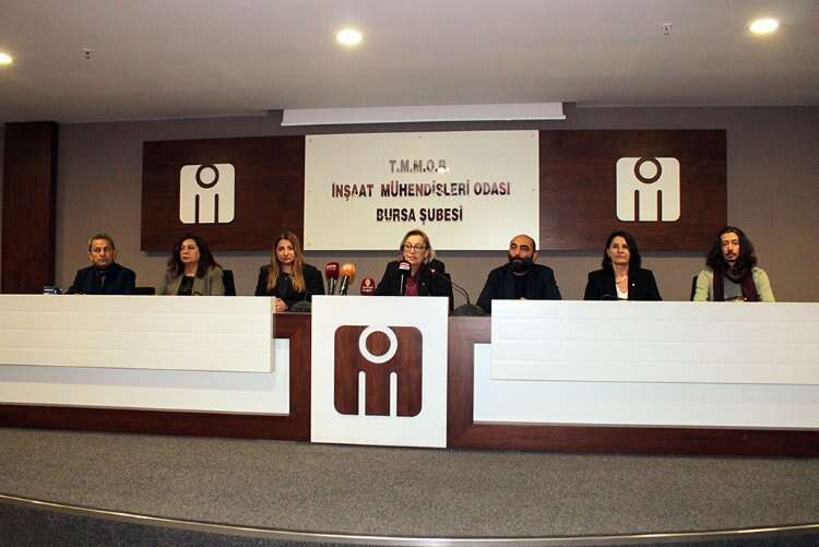 TMMOB İnşaat Mühendisleri Odası’nın (İMO), 6 Şubat Depremlerinin 1’nci yıl dönümünde Türkiye genelinde basın açıklaması gerçekleştirdi. Basın açıklamasını yapan İMO Bursa Şubesi Yönetim Kurulu Başkanı Ülkü Küçükkayalar, bir yılın ardından eksikliklerin hala giderilemeyen bölgede yapılan çalışmaların da sağlıklı kentleşme ve güvenli yapılaşma açısından (yer seçiminden inşa kalitesine kadar) kaygı verici olduğunu söyledi.