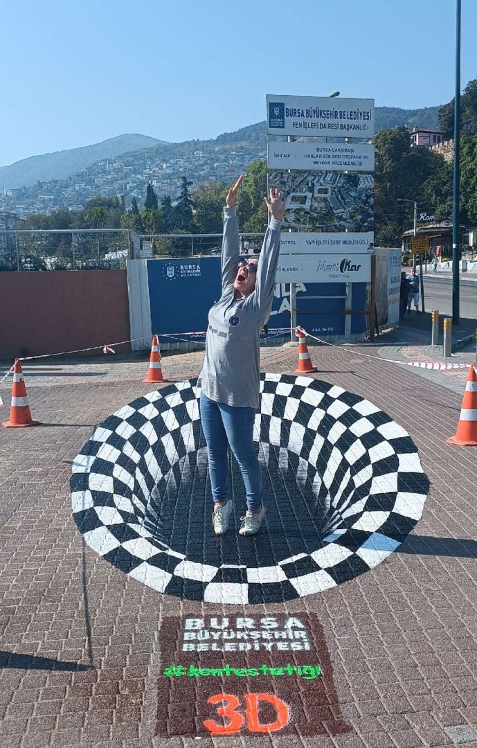 Türkiye'de pek yaygın olmayan Avrupa’daki örneklerinde ise daha çok tebeşir gibi geçici boyalarla yapılan 3D uygulamalar, uzun süre etkileşimin sağlanabilmesi amacıyla Bursa'da dayanıklı özel boyalarla yapılıyor. 3D sokak boyama sanatı çalışmaları belli bir açıdan bakıldığında vatandaşlarda şaşkınlığa yol açıyor.