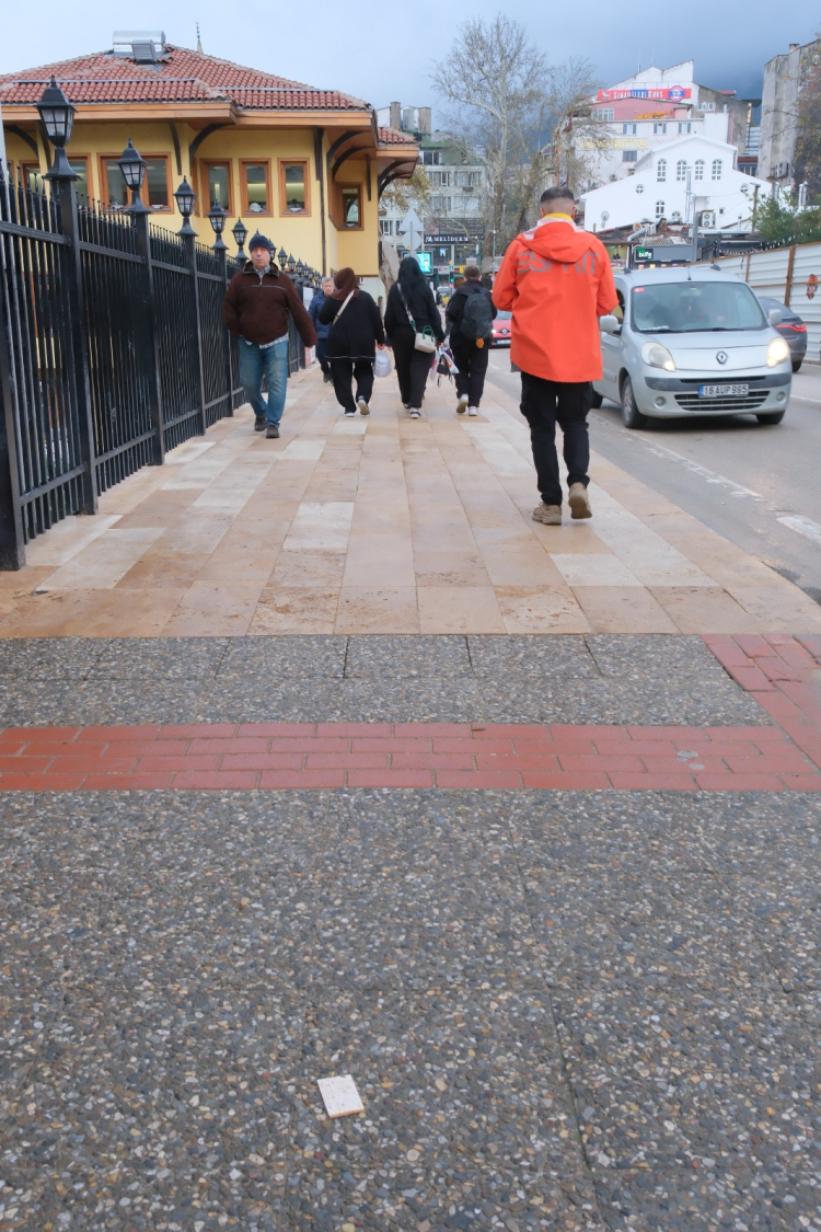 Açıklamada altı çizilen bir başka mesele ise uygulama sırasında projeden sapılması. Zemin kaplamasının tamamen değiştirilmesiyle görsel sürekliliğin kaybolduğu, yeni taşların kayganlığı nedeniyle vatandaşlardan şikâyet geldiği ifade ediliyor. Korkuluklar keza… Onaylı projede olmayan detaylar, bugün köprünün üzerinde karşımıza çıkıyor. Yaya ve taşıt ayrımını belirleyen bordürün ortadan kalkması ise güvenlik tartışmasını beraberinde getiriyor.
