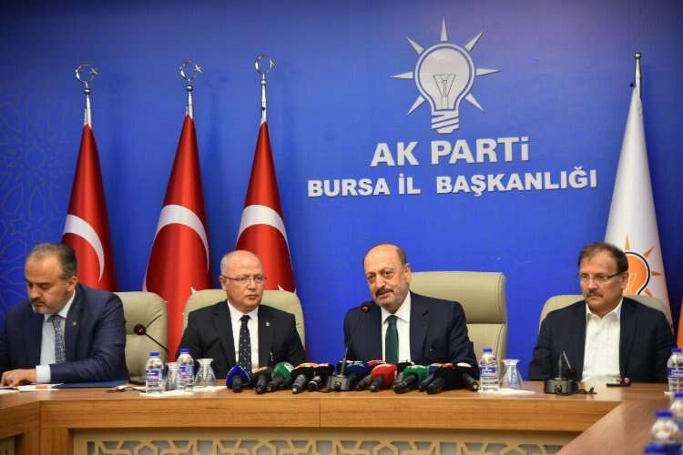 Asıl ilginç gelişme AK Parti İl Başkanlığı’ndaki partililerle buluşmada yaşandı. AK Parti İl Başkanı Davut Gürkan, açılış konuşmasını yaparken, Bursa’nın bir milyon 54 bin sigortalısı ve 500 bin civarında emeklisi olan bir şehir olduğunu hatırlatarak, ‘Bursa’nın hakkını vermek lazım’ dedi.