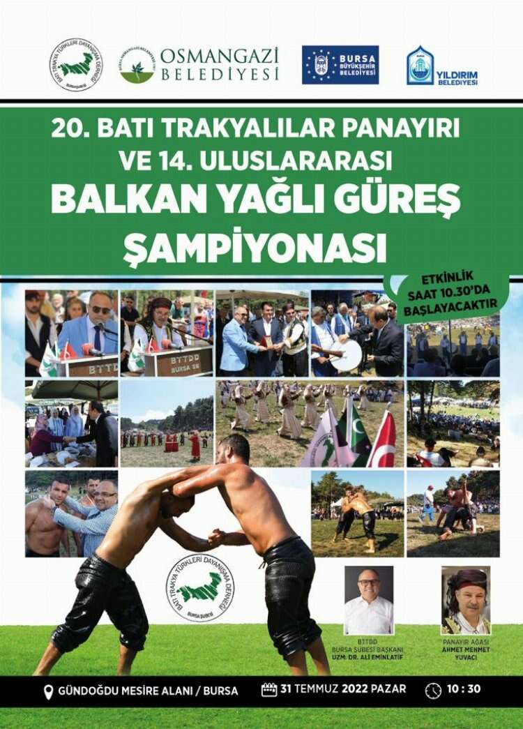 Batı Trakya Türkleri Dayanışma Derneği Bursa Şubesi tarafından Bursa Büyükşehir, Osmangazi ve Yıldırım Belediyelerinin desteğiyle 31 Temmuz Pazar günü Gündoğdu Mesire alanında yapılacak.