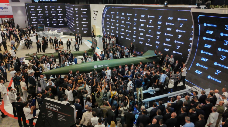 Fuarda, ASELSAN ve ROKETSAN ise tam bir gövde gösterisi yaptı. Fuarın yıldızı deyim yerindeyse Tayfun Block 4’tü. Türkiye’nin ilk hipersonik füzesi olan Tayfun’un yanı sıra AKATA Kapsüllü ATMACA: Deniz hedeflerine karşı gelişmiş AKATA: Görüş menzili ötesi havadan havaya füze, EREN: Yüksek hızlı dolanan mühimmat, 300 ER: Balistik füze sistemi ve en önemlisi de Şimşek-2: Uydu fırlatma aracıydı. Füzeler, ROKETSAN Genel Müdürü Murat İkinci’nin ifadesiyle, “Bu ürünler sadece Türk Silahlı Kuvvetleri için değil, dost ülkeler için de güç çarpanı olacak nitelikte.”
