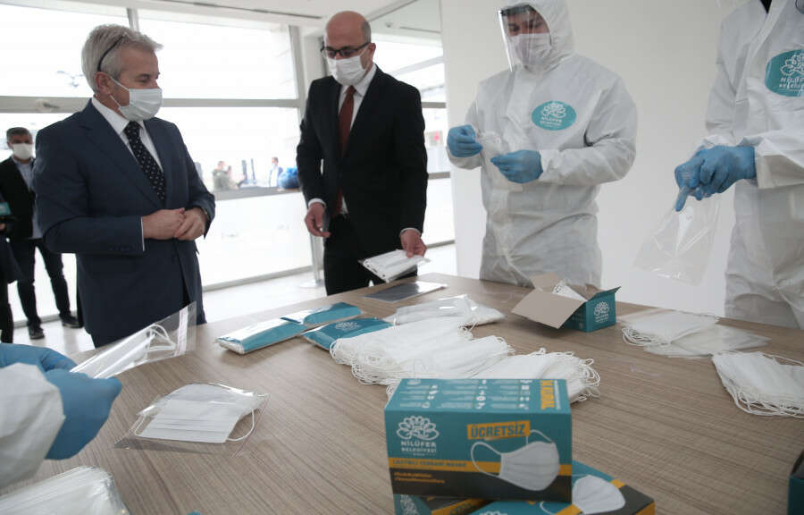 Nilüfer Belediyesi de bu dönemde tüm enerjisini koronavirüs önlemlerine ayırdı. Evde kalan insanların ihtiyaçları, dezenfekte işlemlerinin yanı sıra ağırlık maske üretimine de verildi. Belediye kısa sürede kurduğu tesisle günde 50 bin maske üretimini başardı. Üretilen maskeler de pazarlar, belediye binaları ve muhtarlıklar aracılığıyla vatandaşlara dağıtıldı. 3 aylık sürede 2,5 milyon adet maske üretimi gerçekleştirildi.