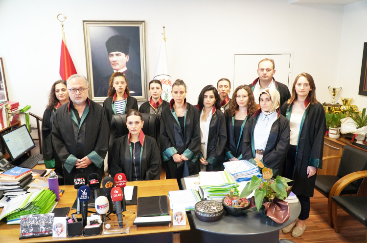 Bursa Barosu adın Hakları Merkezi Başkanı Avukat Ceren İlgen Altuntaş’ın açıklama yaptığı basın toplantısına Bursa Barosu Başkanı Metin Öztosun, başkan yardımcısı Aslı Evke Yetkin, genel sekreter Yener Poroy, yönetim kurulu üyesi Gülender Adıgüzel ile Kadın Hakları Merkezi üyesi avukatlar katıldı.