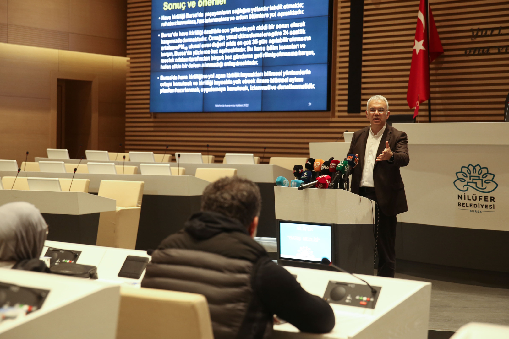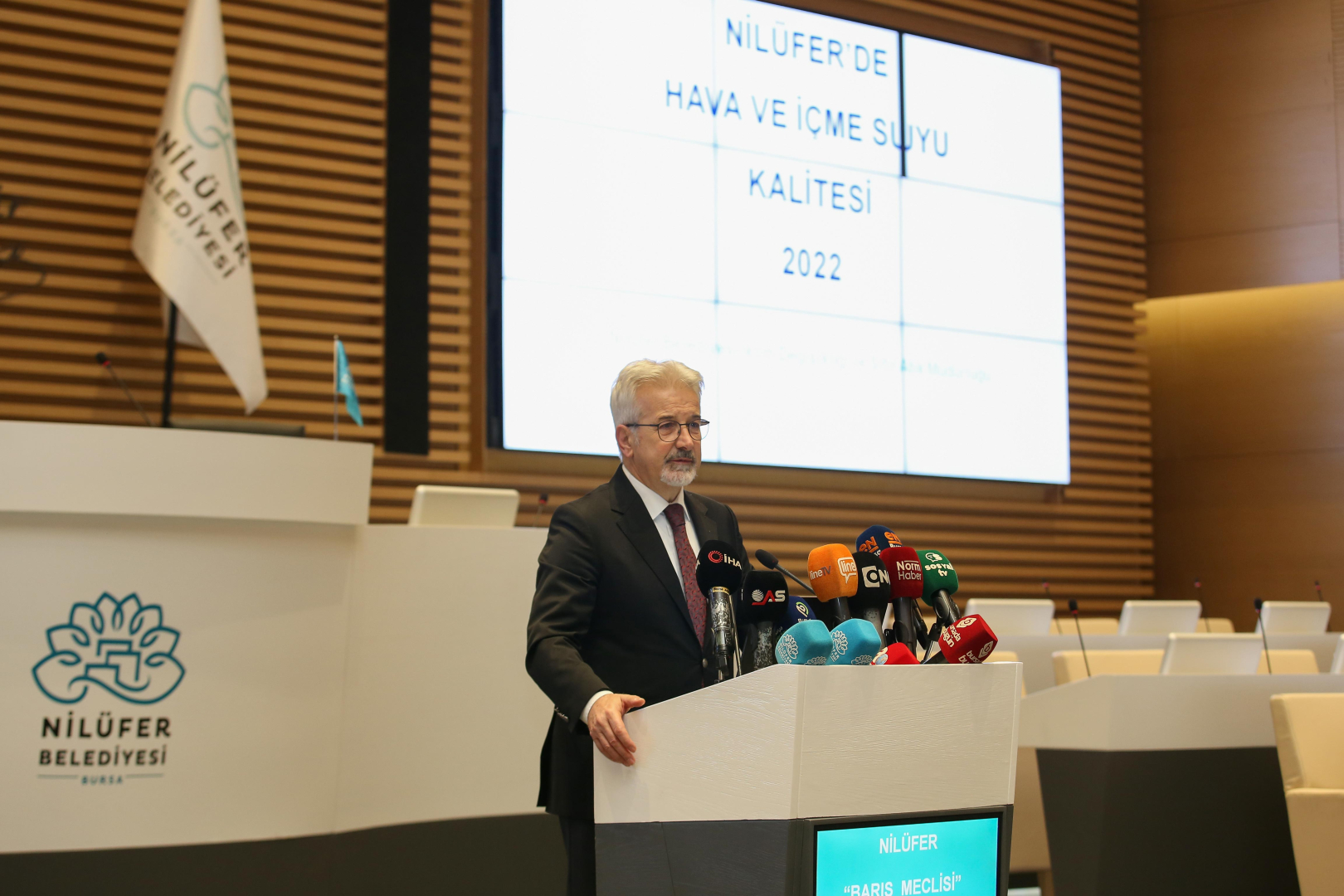 Nilüfer Belediyesi İklim Değişikliği ve Sıfır Atık Müdürlüğü tarafından yürütülen "2022 Yılı Hava ve Su Kirliliği İzleme Çalışmaları"na ilişkin raporun açıklandığı toplantıya Nilüfer Belediye Başkanı Turgay Erdem, Başkan Yardımcısı Zafer Yıldız da katıldı.