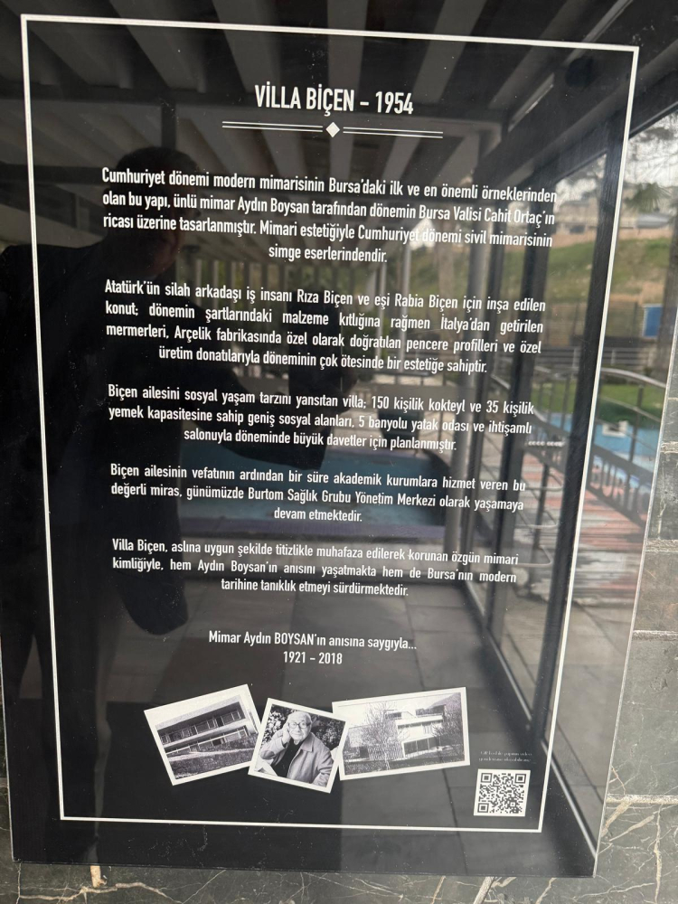 Plakada yazanlar aslında Bursa’nın modern mimarlık tarihine kısa bir not düşüyor.