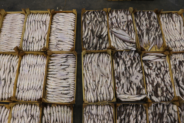 Çalınan düdükle halde sezonun ilk mezadı başladı. Kasalara doldurulan balıklar açık artırma usulüyle satıldı.
