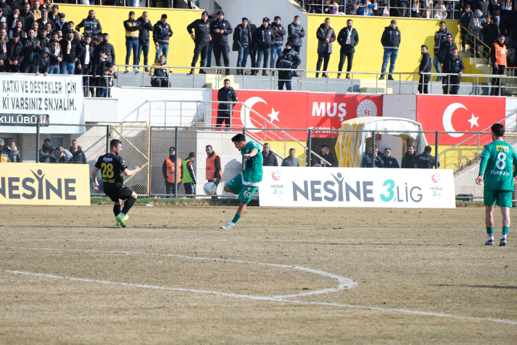 Bursaspor'un ataklarından sonuç çıkmayınca Muşspor aradığı gole 41'de ulaştı...