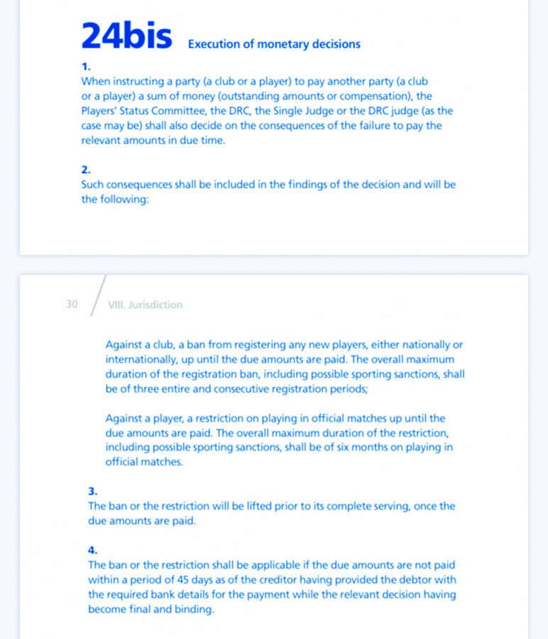Konuyla ilgili FIFA'nın internet sitesinde Haziran 2019'da yayınlanan 86 sayfalık yeni düzenlemenin 24'üncü maddesinin üçüncü fıkrasına bakılabilir...