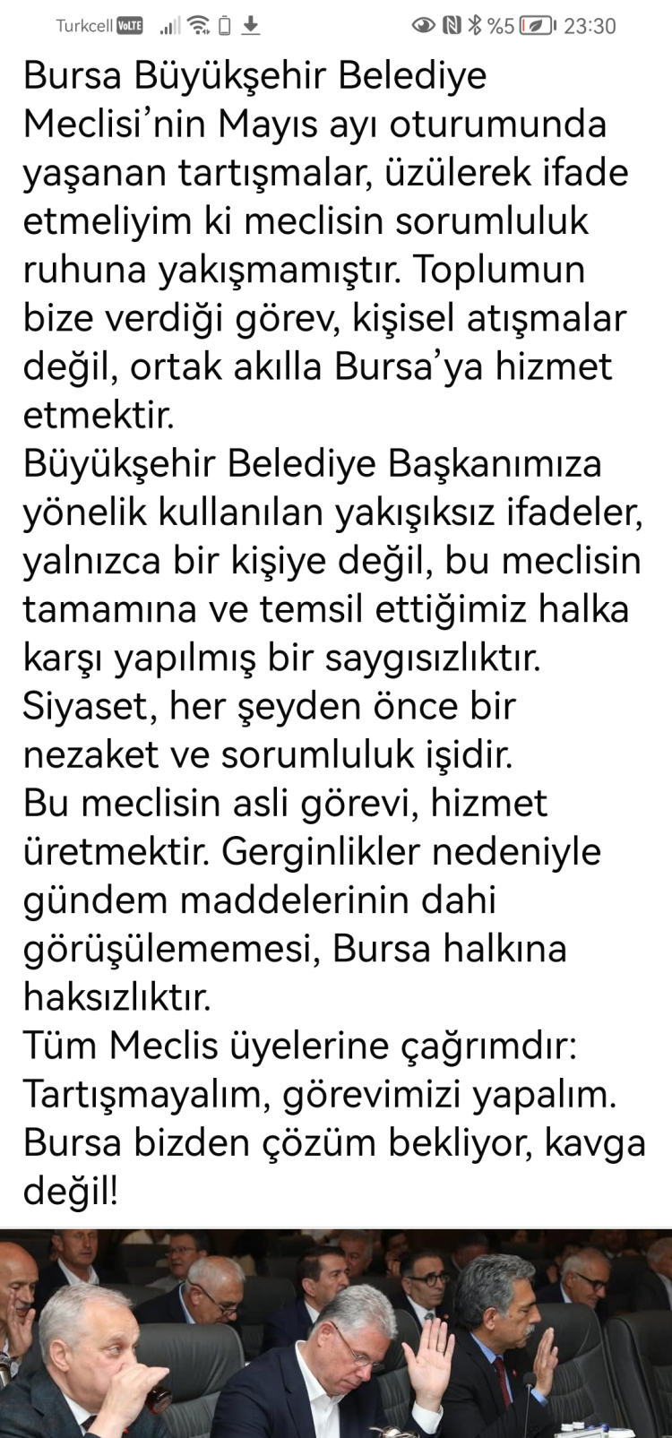Sonrasında, “Toplumun bize verdiği görev, kişisel atışmalar değil, ortak akılla Bursa’ya hizmet etmektir” diyor.
