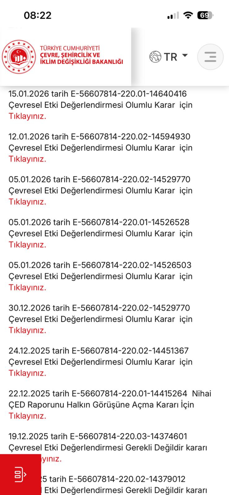 Kiminde ise ÇED'e gerek olmadığı bilgisini görürsünüz.